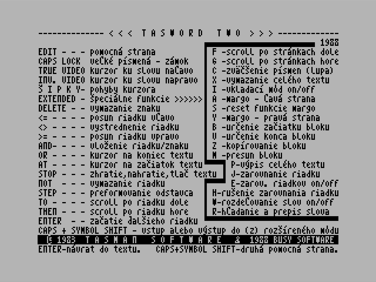 Z krátké zkušenosti s Taswordem musím poznamenat, že i Spectral Writer a tedy i D-Text před mými zásahy byl výrazným zlepšením a zrychlením. Není divu, že se ujal.