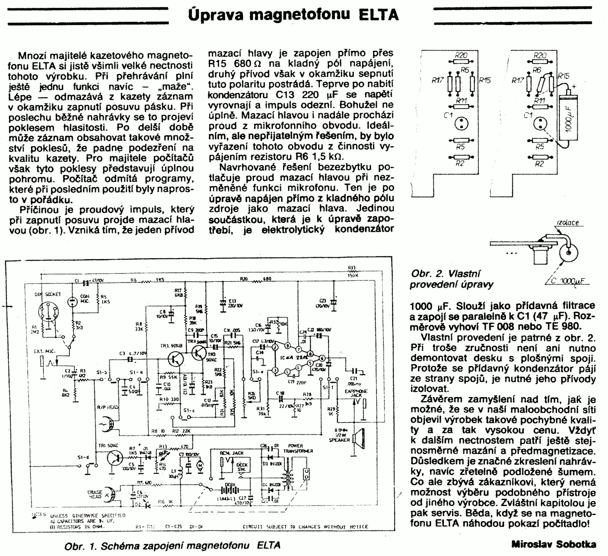 Na druhou stranu, jde o levný (levně provedený, nikoli levně prodávaný) a tedy v mnohém ošizený magnetofon. V Amatérském Rádiu 09/1989 si Miroslav Sobotka právem rozhořčeně stěžoval, jak se vůbec na trhu mohl ocitnout magnetofon, který při každém stisknutí tlačítka play smaže kousíček záznamu. Během zlomku sekundy, než se nabil jeden z kondenzátorů totiž protekl krátký pulz mazací hlavou. Můj původní exemplář z roku 1989 to před opravou dělal taky. Po opravě sloužil několik let každodenního používání doslova do úplného opotřebení (a ještě nějaký čas potom bez dvířek s náhradními tlačítky místo těch původních ulámaných).