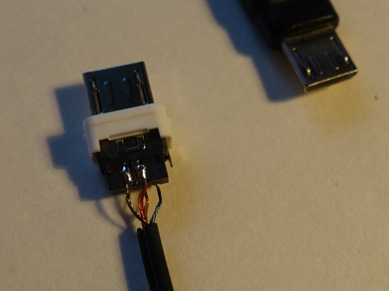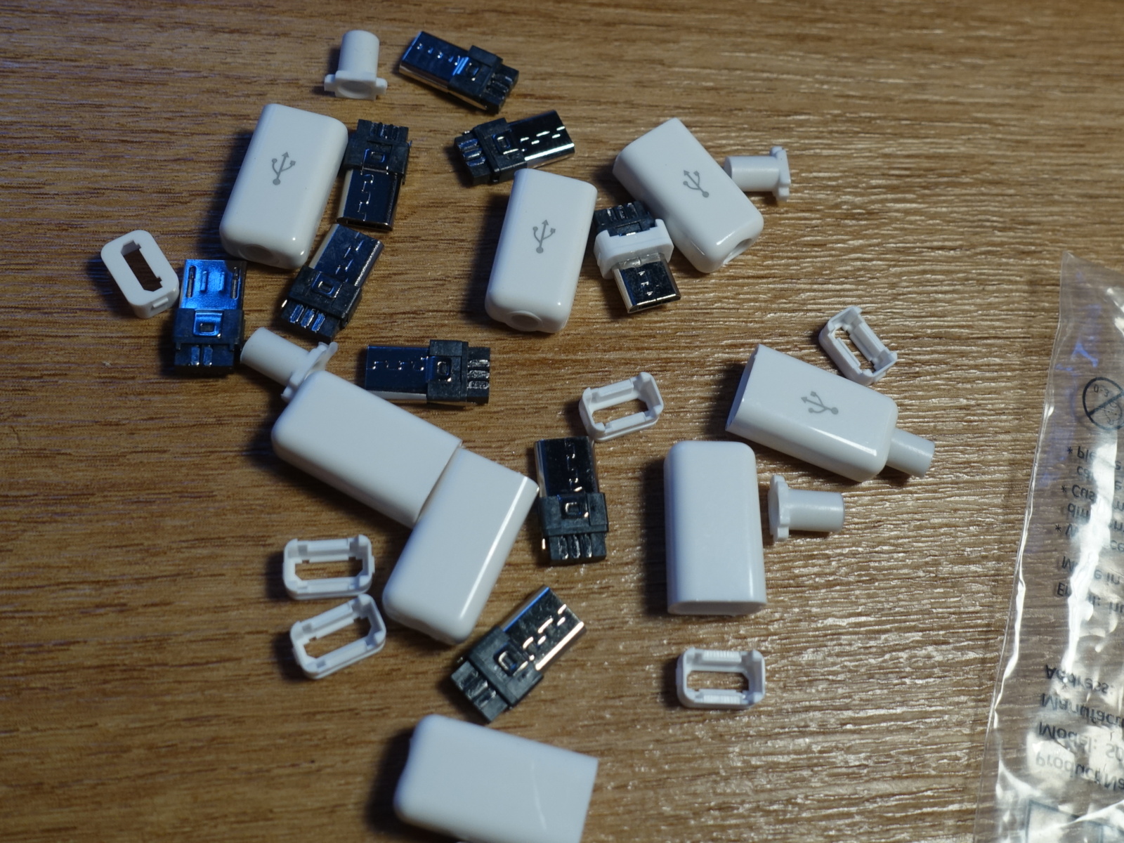 Začal mi zlobit USB konektor. Objednal jsem hrst micro USB konektorů odněkud z Číny, protože datové USB kabely nemají zapojený vývod 4. Je potřeba konektor se všemi pěti vývody / kontakty.