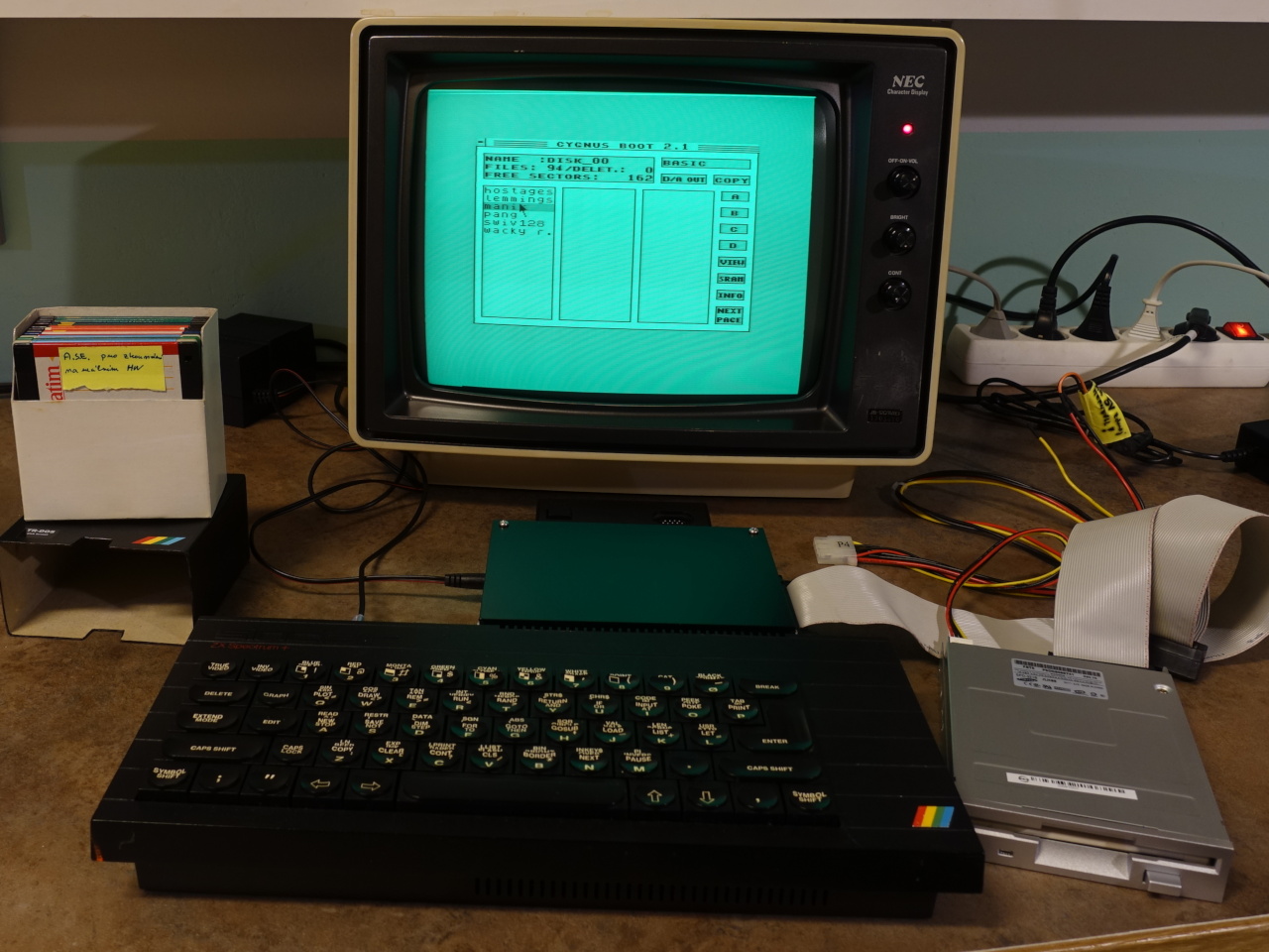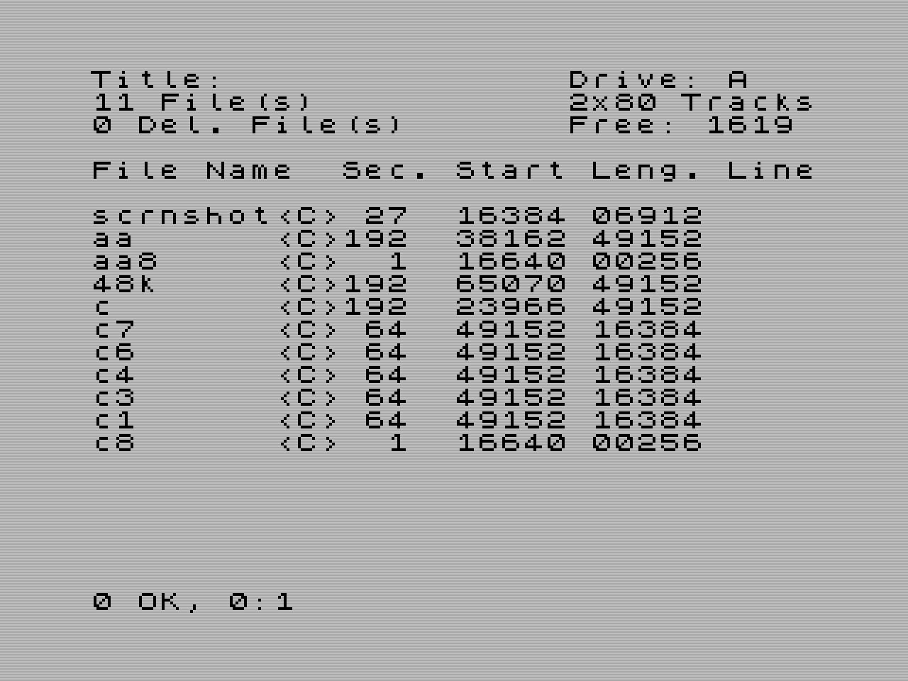 - Na adresu 15607 byla umístěna sekvence IN a,(c) a RET což umožňuje číst registry řadiče při jeho přímém ovládání. Sekvence OUT (c),a a RET je umístěna jinde. Díky tomu není potřeba hardwarově upravovat desku DOSu.