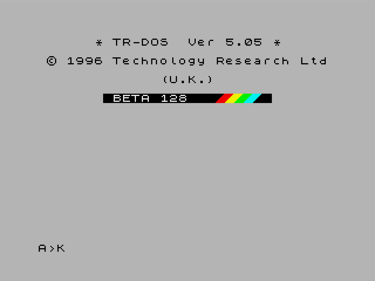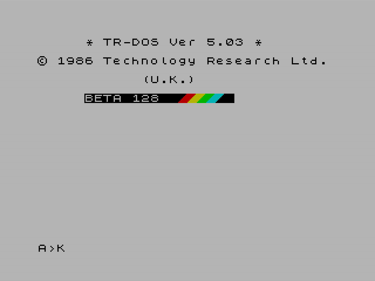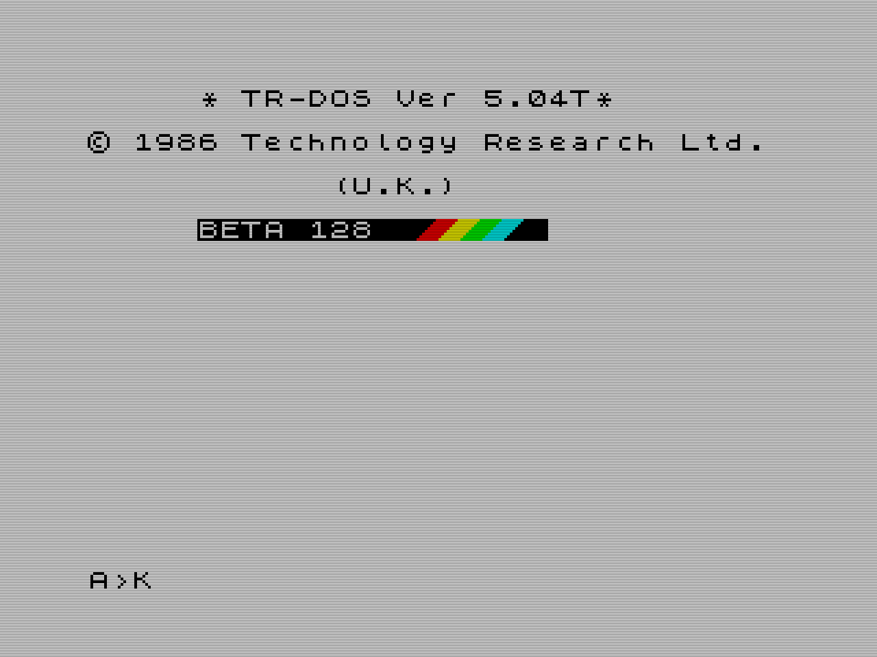 Příkazem RANDOMIZE USR 15616 můžete skočit do příkazového řádku TRDOSu. Jeho první vyvolání zároveň zobrazí identifikaci a verzi TRDOSu. Viz screenshoty. Původní verze opravdu má takto nevycentrované titulky a chybí jas barevných ZX Spectrum pruhů, i tento drobný detail je ve verzi 5.05cz opraven. Verze 5.04T pochází z aktuálně používané verze ESXDOSu 0.89, kde je disketová mechanika emulována pomocí obrazu diskety .TRD na úložišti s FAT16/32 filesystémem. Opakovaný vstup do příkazového řádku obrazovku nepřepisuje.