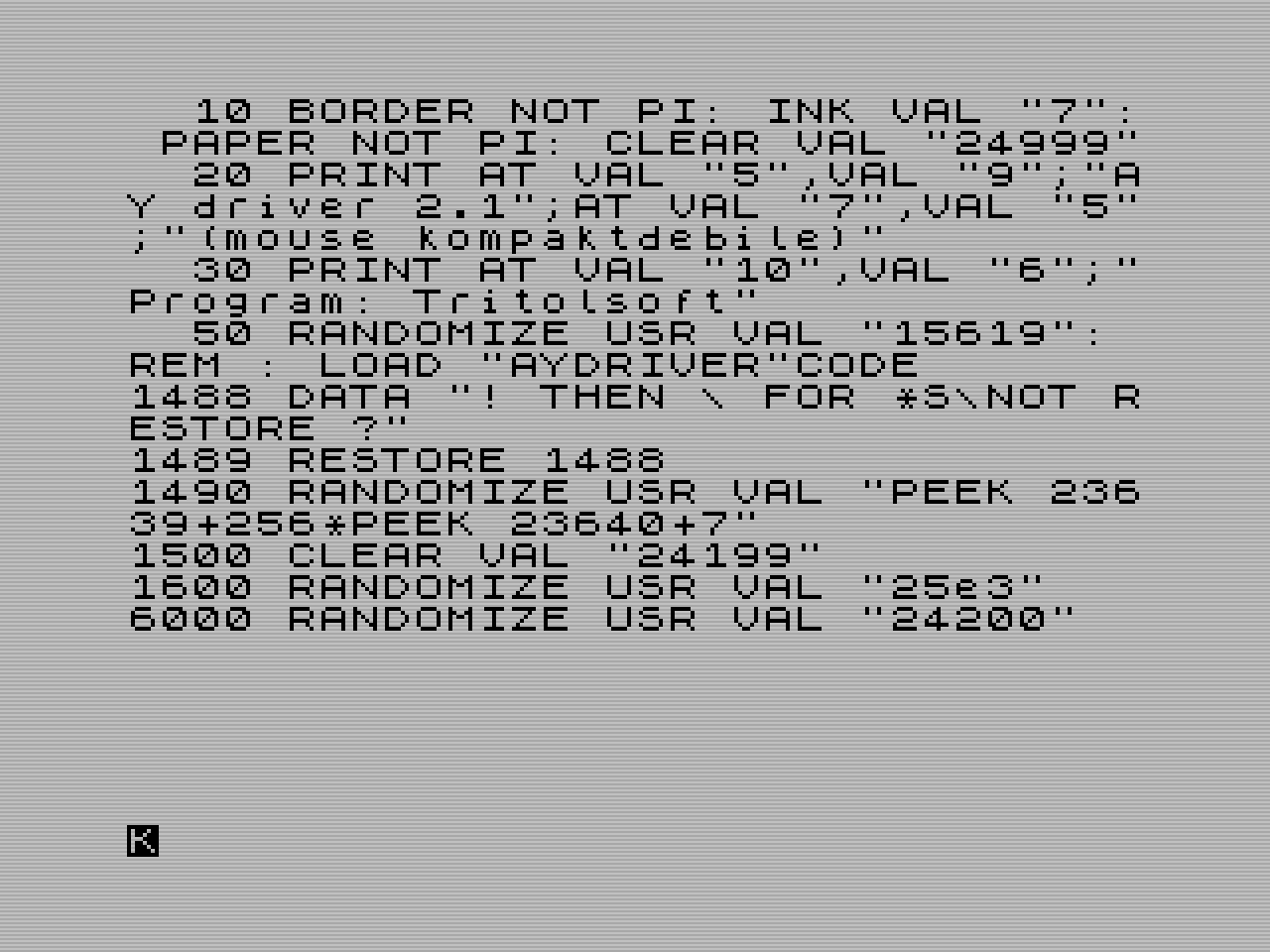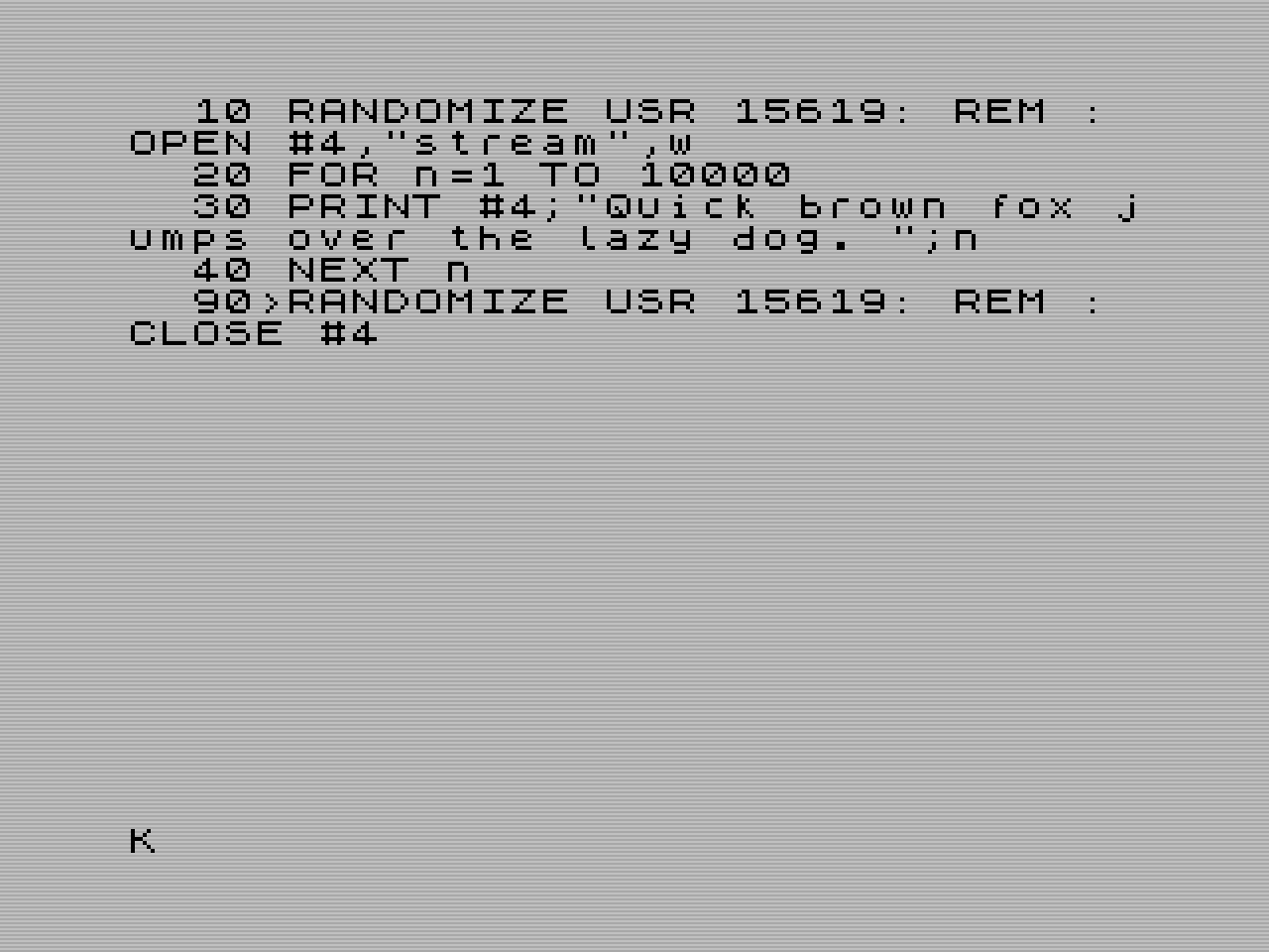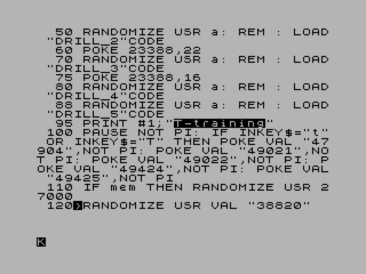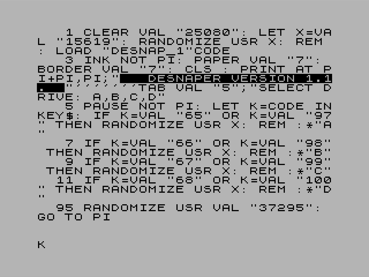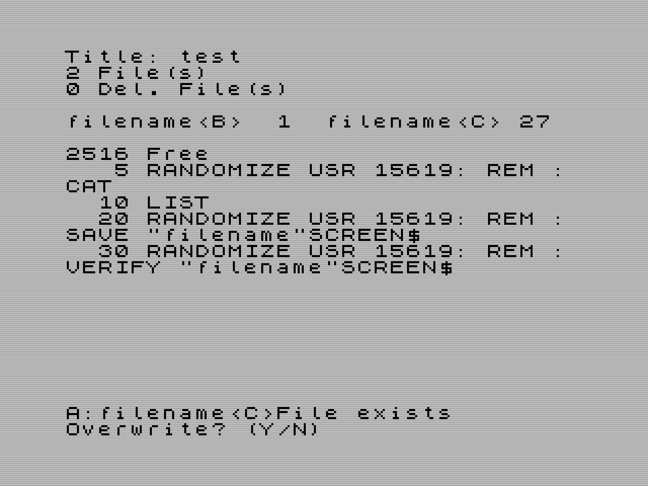 RANDOMIZE USR 15619: REM :*"a:" RANDOMIZE USR 15619: REM :*"b:"