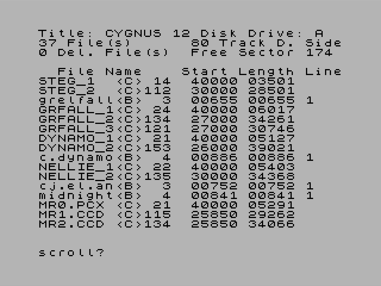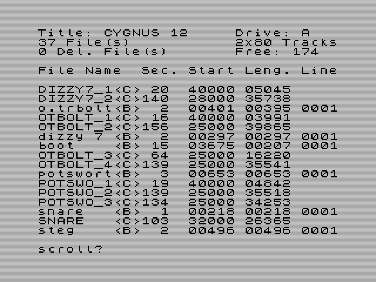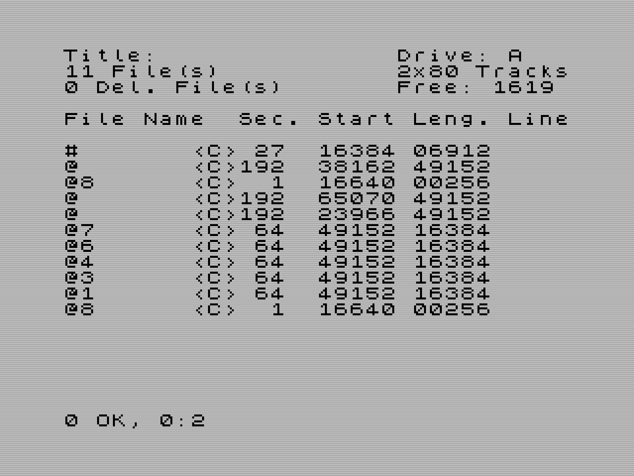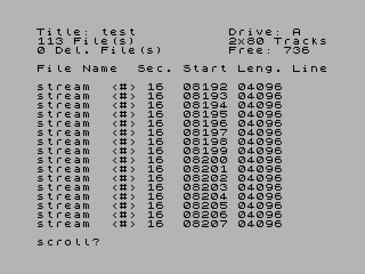 | LIST #3 | Vytiskne podrobný výpis diskety v aktuální disketové jednotce skrz kanál 3. | ||