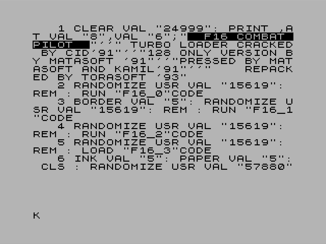 10 RANDOMIZE USR 15619: REM : CAT