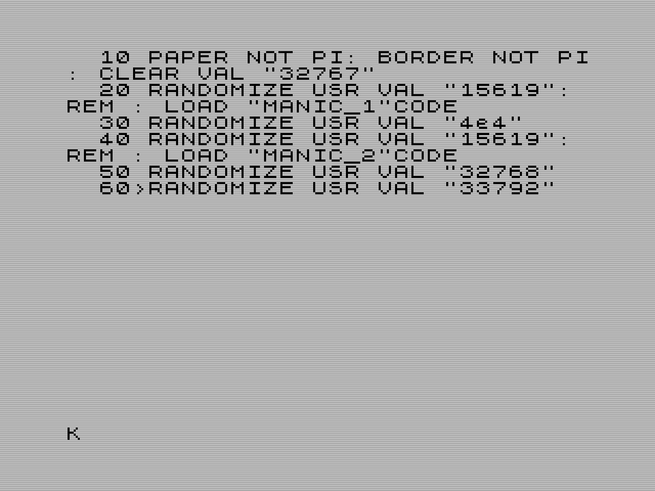 RANDOMIZE USR 15619: REM :*a RANDOMIZE USR 15619: REM :*b