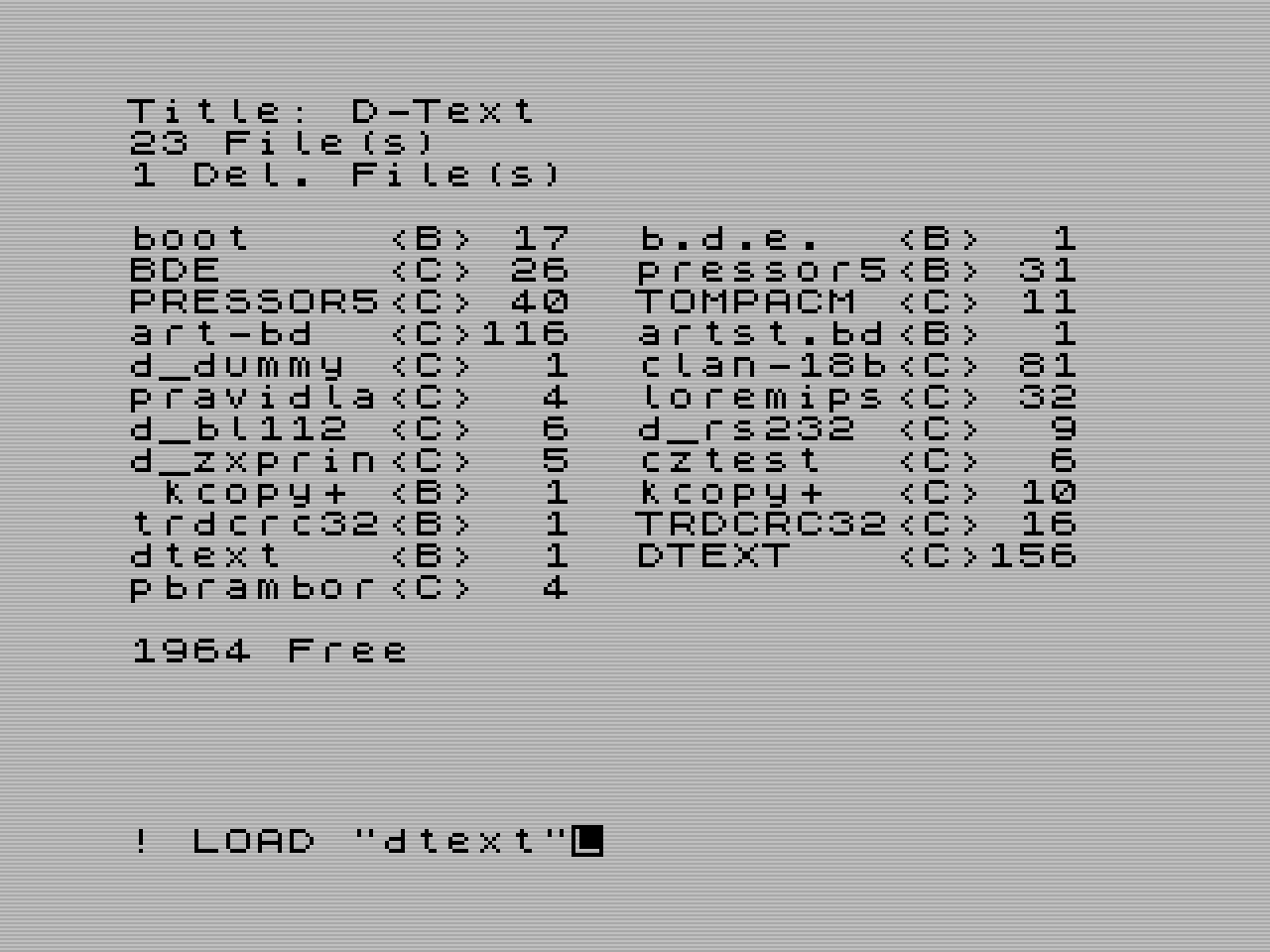 | LIST "b:" | Zobrazí podrobný výpis z diskety v disketové jednotce B. | ||